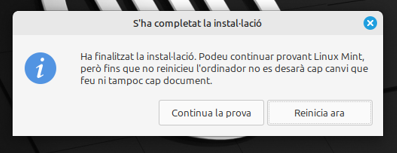 En acabar, ens demana reiniciar: