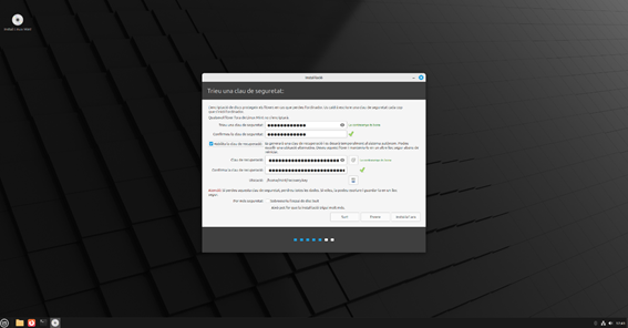 Escrivim una clau de seguretat i habilitem la clau de recuperació: